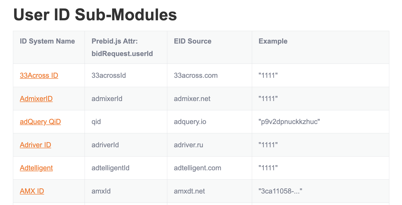 User ID sub modules: Module - User ID for Header Bidding.